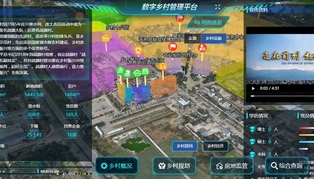 依据乡村振兴建设主导思想,打造集综合性服务门户、乡村文明文旅、社会化服务、自然资源管理、星空官方网站、产业数字化、人才数字化、宅基地管理、三资管理以及数字乡村博物馆等矩阵,利用天、空、地一体化数字结合,全面实现美丽乡村数字化提升……