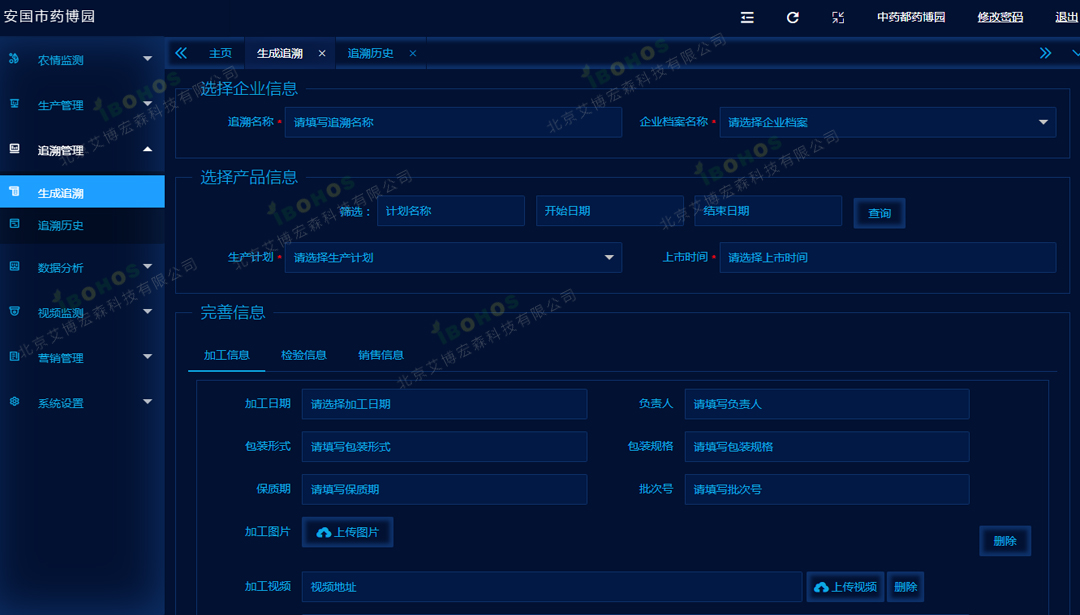 依据生产计划模型以及生产档案内容在线生产质量追溯二维码。可针对产品批次、生产档案编号、农事作业记录、加工记录、质检报告、仓储物流信息、销售信息以及企业基本档案进行融合生产质量安全追溯体系。